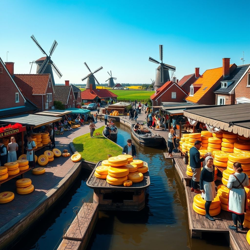 阿尔克马尔作为荷兰奶酪的发源地之一,深受全球游客的喜爱。每年夏天,阿尔克马尔的奶酪市场都会吸引成千上万的游客和当地人前来观赏与购买。这个市场已有数百年历史,至今依然保持着传统的方式。你可以看到穿着古老服饰的奶酪商人,熟练地用木板把沉重的奶酪轮送到台上,仿佛进入了一个穿越时空的世界。这里的奶酪种类丰富,从经典的高达到风味独特的蓝纹奶酪,每一块奶酪都散发着新鲜的香气,令人垂涎欲滴。